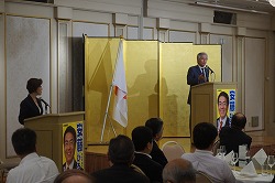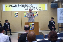自民党が推薦する山本けいいち大山崎町長選挙候補予定者を励ます、心のふれあう町民の会「総決起大会」にて自民党を代表してご挨拶をいたしました