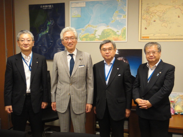 日本税理士会連合会 新会長に就任された神津 信一 会長と、再任された同政治連盟の小川 令持 会長がご挨拶に来られました。