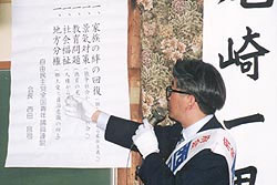 雨の中、熱心に聞き入る 昌友会のメンバー