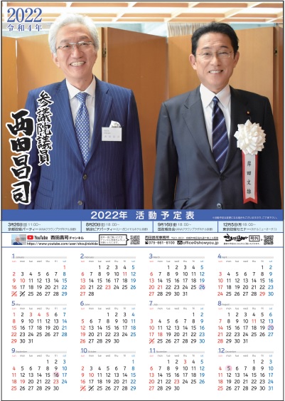 『西田昌司活動予定表2022(令和4年)Showyou号外 A2版』