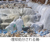 また、家畜伝染病予防法では、鳥インフルエンザの感染が確認された場合には、そこから半径三十キロの養鶏場では鶏や鶏卵の移動が禁止されることになります。これは、その地域を封鎖することによりウィルスの蔓延を防止しようとするものです。また日本では、鳥インフルエンザの予防ワクチンの接種を養鶏業者に認めていません。これは、ワクチン接種で鶏の発病を押さえることより、ウィルスの蔓延を防止するという国家防疫が優先されたからです。国家防疫の観点により、事業者に感染の通報を求め、蔓延防止のために殺処分の命令が規定されています。しかし、それを担保するための具体的方策や風評被害も含め、事後の損失の補償などは全く想定されていないのです。そのため、多くの養鶏農家が莫大な損害を蒙っているのです。