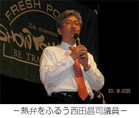 去る、3月18日にテルサホールで開催致しました第3回西田昌司大演説会には、多くの方々にお集まりいただき大盛会を収めることが出来ました。ここに心より御礼申し上げます。熱気あふれる2時間の内容を、以下に要約させていただきます。