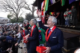 千本釈迦堂「おかめ福節分会」で豆撒きをいたしました