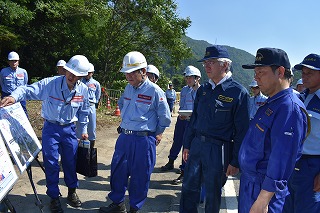 牧野副大臣・本田衆議院議員と国道27号土砂崩落現場の被害状況の説明を受ける