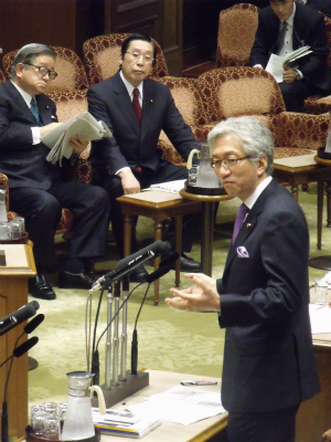 つまり、デフレ下では民間の企業に対していくら金利を下げても、お金を供給しても景気はよくならないということです。残っているのは最後の借り手である政府が、民間が借りないお金をたくさん使って、公共事業や政府支出を増やし雇用を創出することによって民間に直接お金を供給していくということが必要なのです。こうしたことを3月27日と29日に行われた参議院の財政金融委員会で詳しく説明しながら安住財務大臣、白川日銀総裁と議論してきました。私のホームページ等、インターネットに出ておりますので、是非この様子を皆様方に御覧頂きたいと思います。
