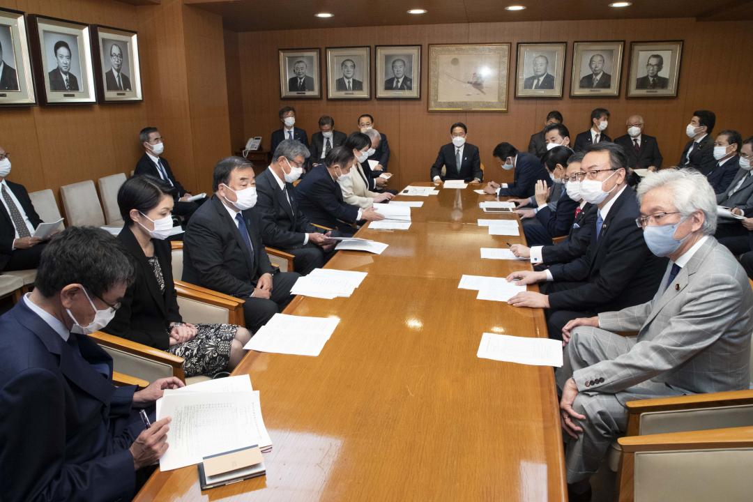 自民党本部で岸田総裁出席の緊急役員会の様子