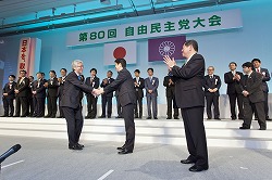 自民党大会にて安倍総裁と握手