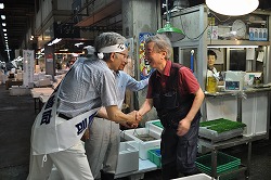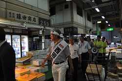 選挙戦6日目。本日スタートは中央市場の桃太郎作戦からです。