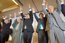 開票セレモニーでは応援した皆が一体となって、喜びを分かち合いました。