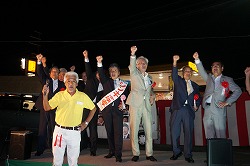 久御山町長選挙 信貴康孝さんの事務所開き・決起大会が行われ、府連会長として激励を行いました。