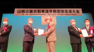 山陰近畿自動車道早期実現促進大会にて「早期全線開通」に向けた要望をうけました