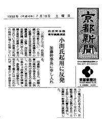 私の選挙区は京都ですが、京都では共産党が以前から大変大きな勢力を持っております。今回ついに、自民党をその得票数で抜き、府内第一党の地位を獲得するに及びました。その原因について私は、共産党の主張するような消費税の5%を、3%に戻すとかいう政策だけが受け入れられたからではないと考えております。共産党の主張してきたことは、本来自民党が主張しなければならないことの代弁をしていたということなのです。例えば共産党は大店舗法の廃止により、商店街がなくなってしまうことに対する矛盾を訴え、また、徒に規制緩和をすることは、弱肉強食社会を作り出し、経済秩序を崩壊し、中小企業の生き残れない商環境をつくり出してしまう等、まさに保守政党として自民党が主張し、守らなければならない大切なものを、共産党が訴えていたのでした。そう言えば共産党の候補者は京都では、キャッチフレーズに「家族色の政治」ということを掲げてきました。そして自民党はどうだったかといえば、マスコミが作り出した世論に引きずられて、改革という言葉を意味もなく使うのが精いっぱいでした。これでは本来の自民党の支持者が、共産党に回ってしまうのも無理のないところです。共産党の主張は結局のところ、現代社会の矛盾をついているだけにすぎず、彼らが自由主義社会を本当に守る気がないのは明らかでありますが、有権者はそんなことより、共産党の主張の方が、保守党の立場を忘れた自民党の主張より、日本の良き伝統を守る主張として頼りになるものと感じ、評価したのではないでしょうか。